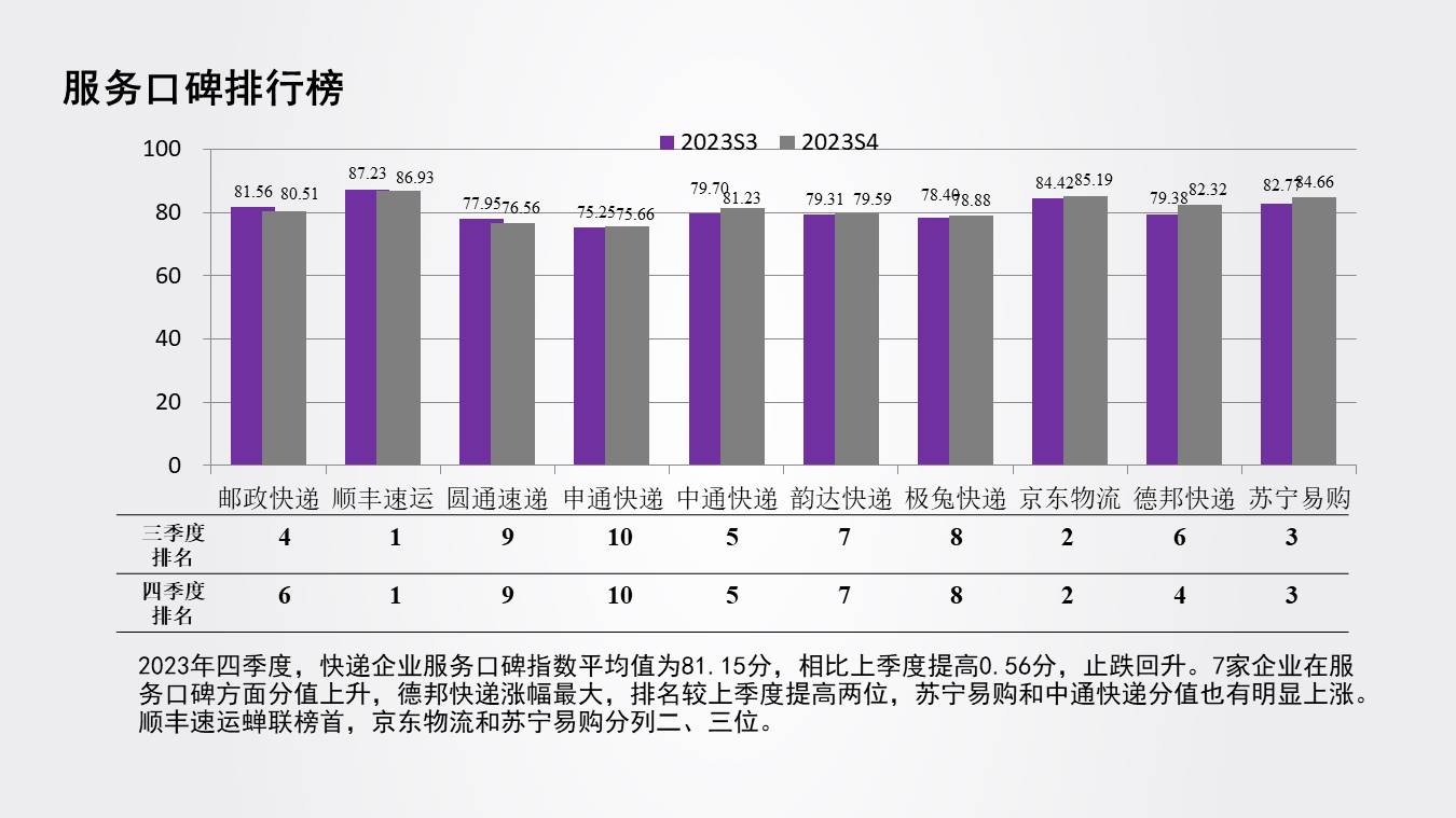 中國物流服務(wù)品牌指數(shù)(快遞物流)報(bào)告2023年四季度