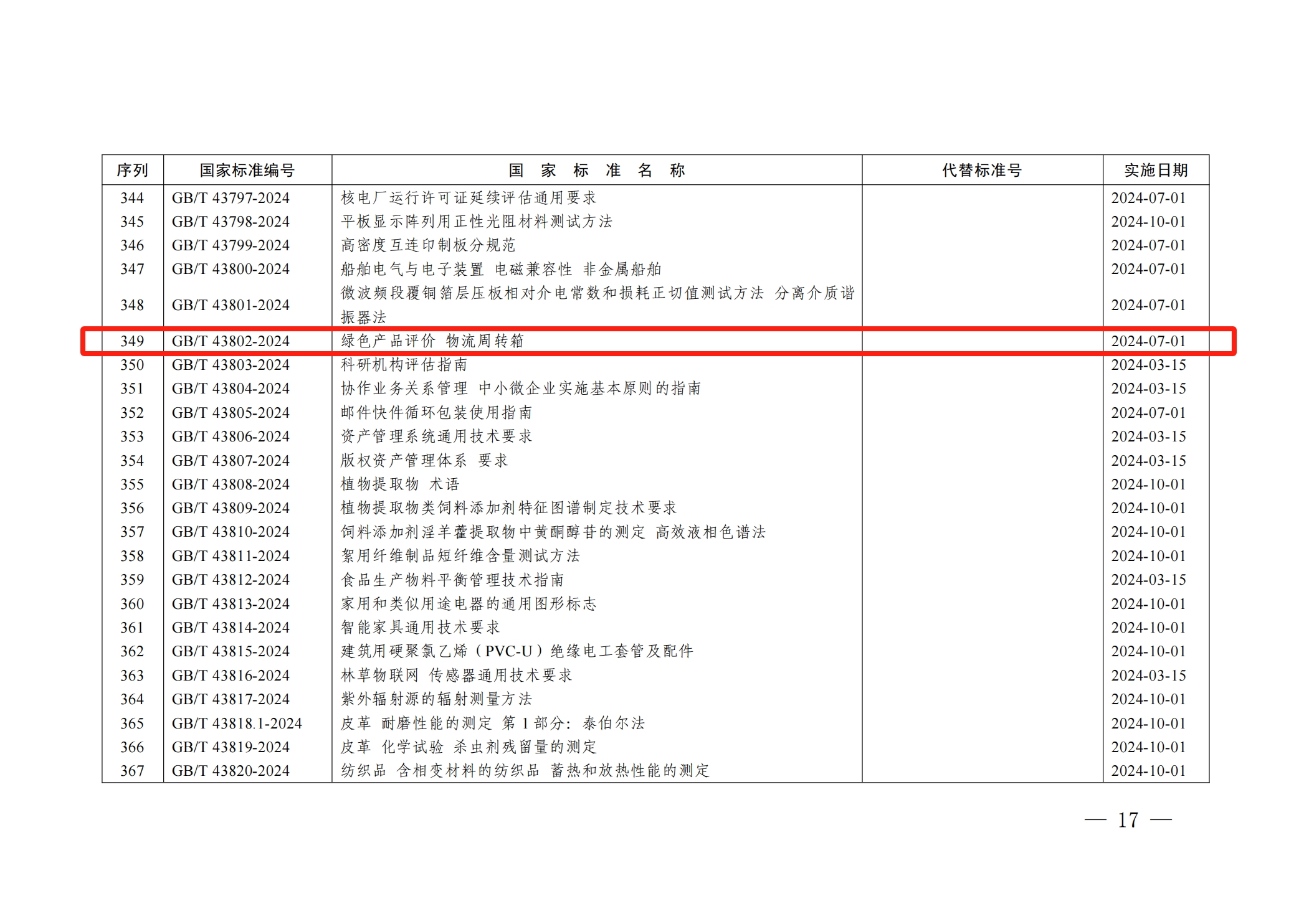 2024年3月15日,國家市場監督管理總局(國家標準化管理委員會)發布2024年第1號公告,批準發布《原木檢驗》等406項國家標準。其中批準發布了由全國物流標準化技術委員會提出并歸口的《綠色產品評價 物流周轉箱》(GB/T 43802—2024)這一國家標準,該標準于2024年7月1日正式實施。旨在規范物流周轉箱的綠色產品評價工作,推動物流行業的可持續發展。