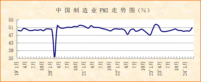 中國物流與采購聯(lián)合會、國家統(tǒng)計局服務(wù)業(yè)調(diào)查中心發(fā)布的2024年3月份中國制造業(yè)采購經(jīng)理指數(shù)(PMI)為50.8%,較上月上升1.7個百分點(diǎn),連續(xù)5個月運(yùn)行在50%以下后重返景氣區(qū)間。分項指數(shù)變化顯示,市場供需協(xié)同增長,四大行業(yè)聯(lián)動回升,大中小企業(yè)均有改善,宏觀經(jīng)濟(jì)整體回升向好。