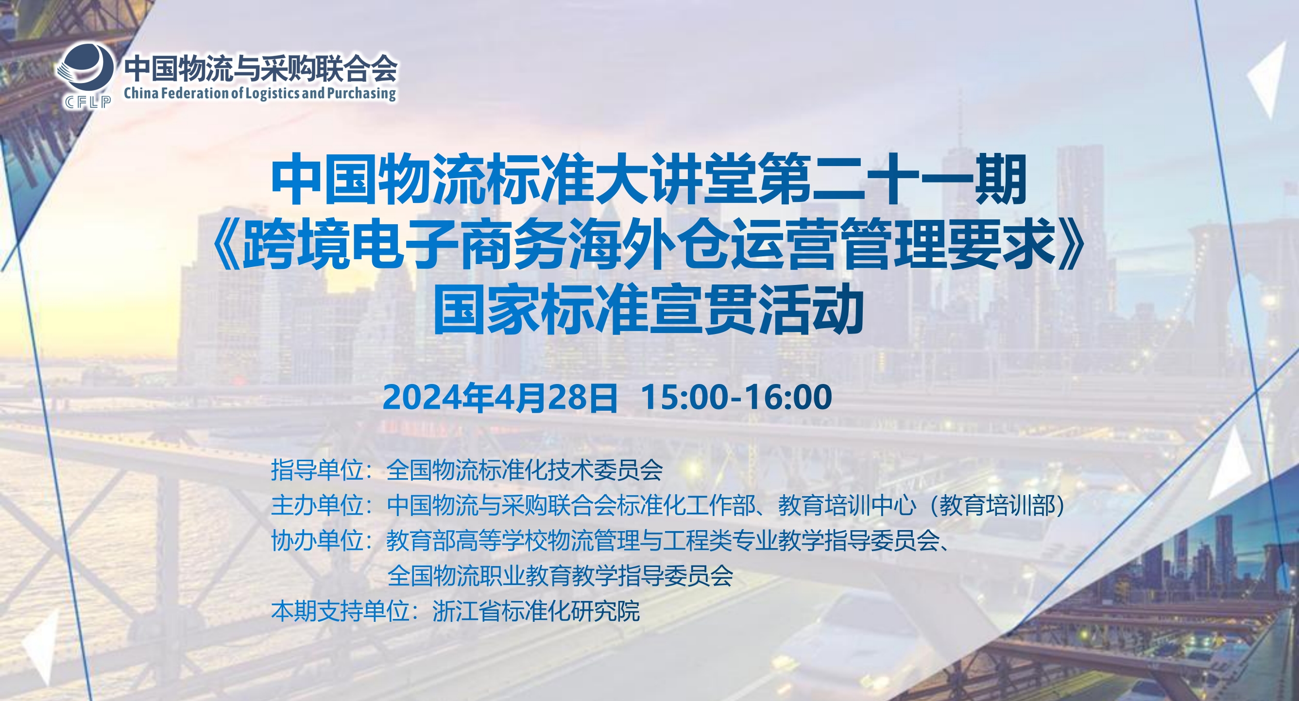2024年4月28日,“中國物流標準大講堂21期:《跨境電子商務海外倉運營管理要求》標準宣貫”通過線上方式成功舉辦,近 1000人參加了宣貫活動。