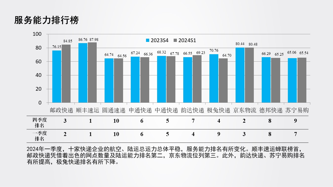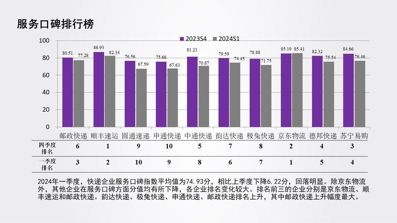 中國(guó)物流服務(wù)品牌指數(shù)(快遞物流)報(bào)告2024年一季度