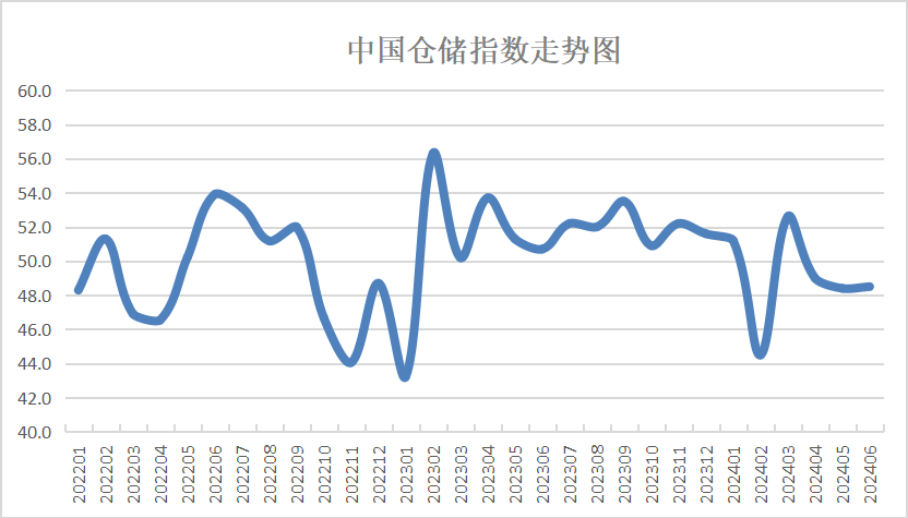 中國物流與采購聯合會和中儲發展股份有限公司聯合調查的中國倉儲指數,2024年6月份為48.5%,較上月回升0.1個百分點,在收縮區間小幅回升,新訂單、平均庫存周轉次數等指數均有回落,表明需求回升動力相對偏弱,商品周轉效率減慢,行業運行面臨一定壓力。不過,企業員工數量和庫存水平下降速度有所放緩,且業務活動預期指數仍在擴張區間,整體來看,行業運行呈現緩中趨穩的態勢。具體來看,本月指數有以下幾個特點: