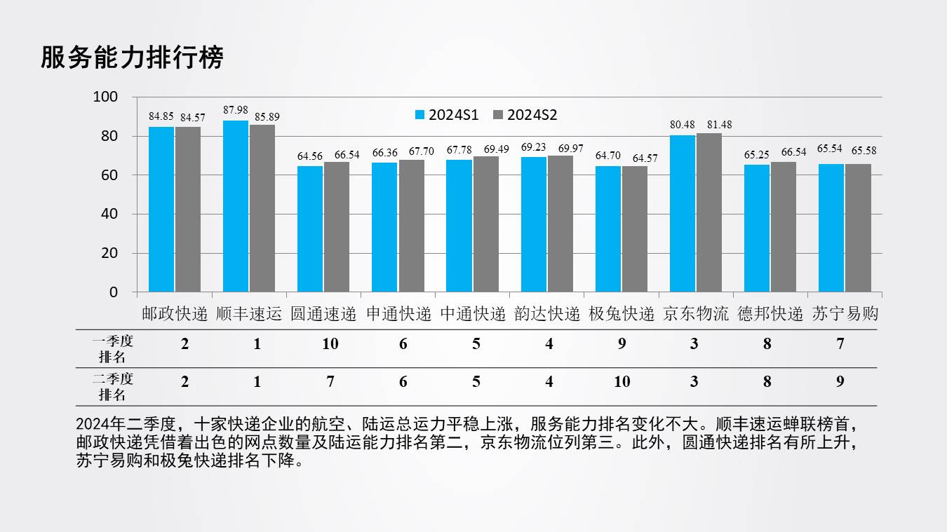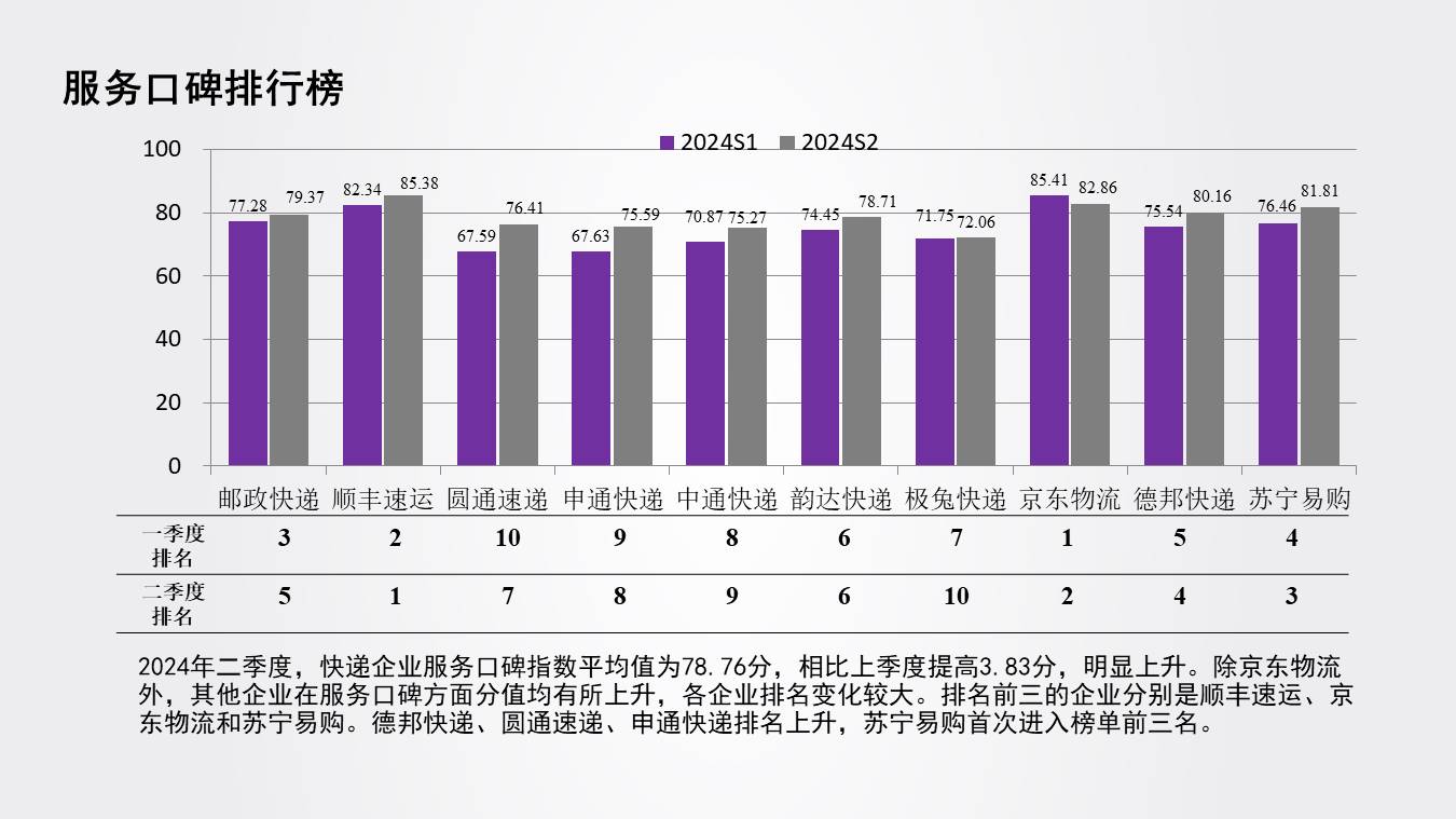 中國物流服務品牌指數(快遞物流)報告2024年二季度