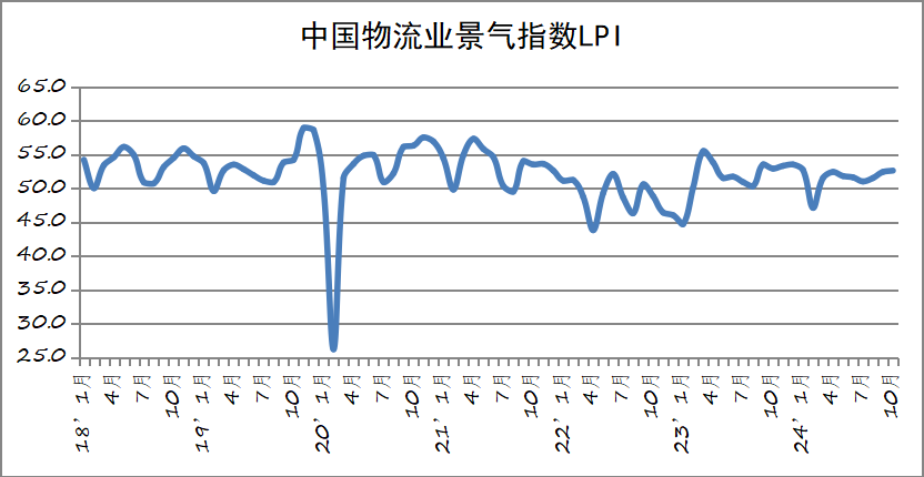 中國物流與采購聯合會發布的2024年10月份中國物流業景氣指數為52.6%,較上月回升0.2個百分點;中國倉儲指數為49.4%,較上月回落0.4個百分點。