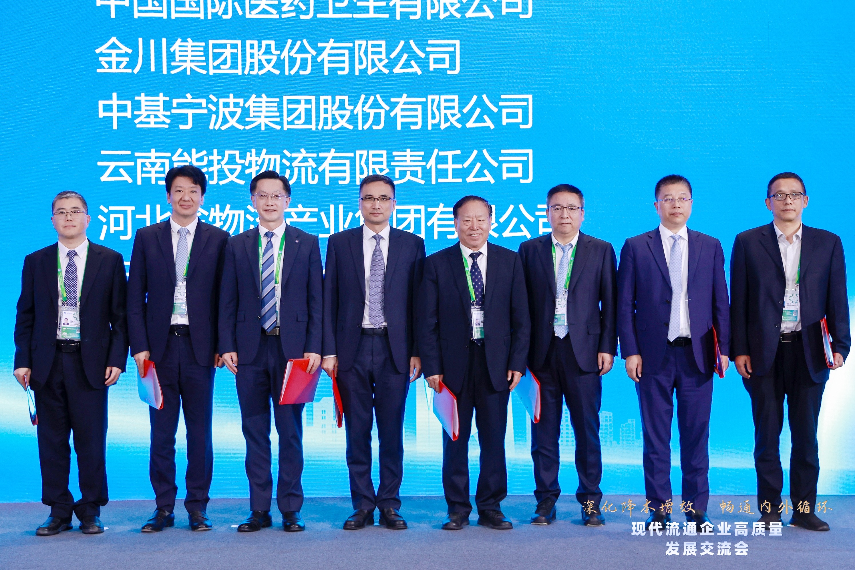 賀登才與中國礦產(chǎn)資源集團(tuán)副總經(jīng)理高曉宇、五礦發(fā)展股份有限公司副總經(jīng)理李輝、招商局能源運(yùn)輸股份有限公司總經(jīng)理王永新、物產(chǎn)中大集團(tuán)股份有限公司副總裁李兢、金川集團(tuán)股份有限公司副總經(jīng)理陳軍、河北省物流產(chǎn)業(yè)集團(tuán)有限公司副董事長張有貴、云南能投物流有限責(zé)任公司董事長祝永華等部分發(fā)起單位代表共同宣讀《倡議書》。