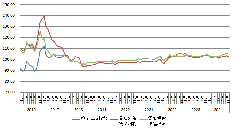 零擔(dān)輕貨指數(shù) | 102.5 | 102.8 | -0.58 |