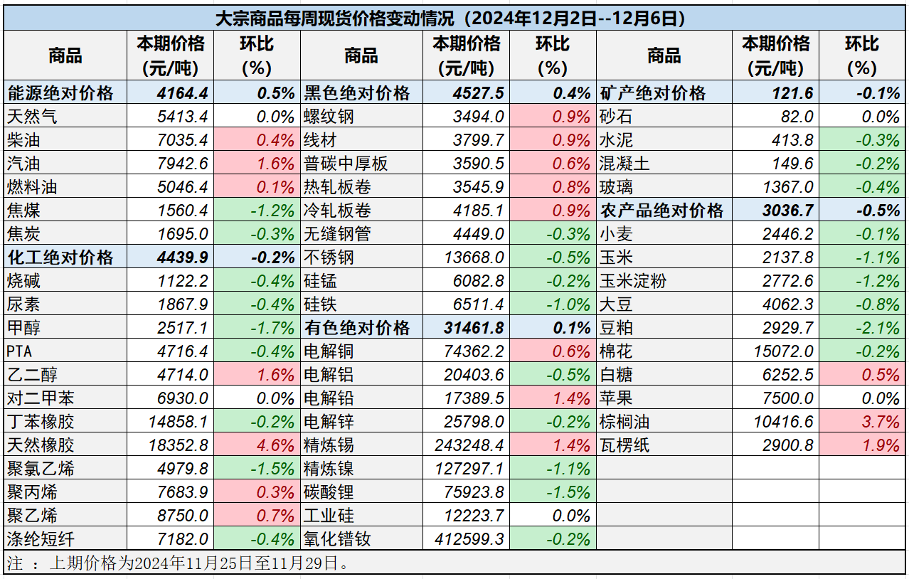 - 中國重要大宗商品市場價(jià)格變動(dòng)情況周報(bào) (251208--251212)