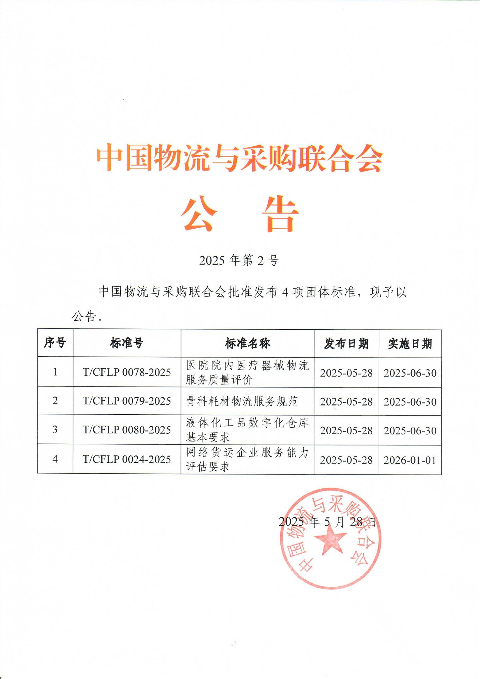 中物聯(lián)2025年第2號公告 《醫(yī)院院內(nèi)醫(yī)療器械物流服務(wù)質(zhì)量評價》等團體標準發(fā)布