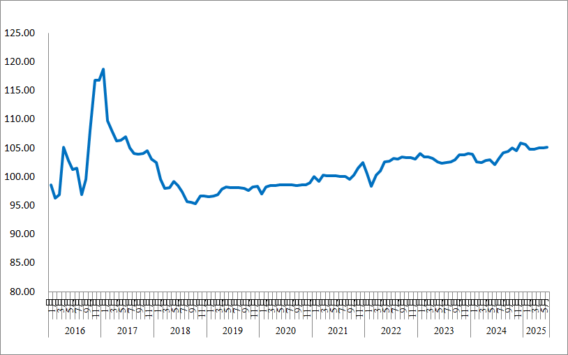 2025年6月份,由中國(guó)物流與采購(gòu)聯(lián)合會(huì)和林安物流集團(tuán)聯(lián)合調(diào)查的中國(guó)公路物流運(yùn)價(jià)指數(shù)為105.1點(diǎn),環(huán)比回升0.06%,同比去年回升2.9%。從月內(nèi)看,第一、四周運(yùn)價(jià)指數(shù)環(huán)比略微回升,其余各周運(yùn)價(jià)總體穩(wěn)定。