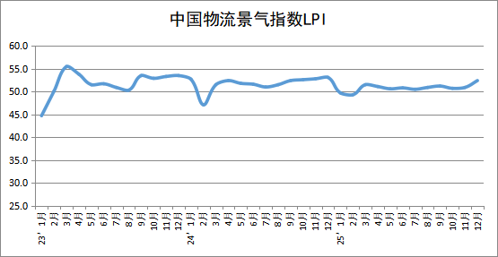 中國(guó)物流與采購(gòu)聯(lián)合會(huì)發(fā)布的2025年12月份中國(guó)物流業(yè)景氣指數(shù)為52.4%,較上月回升1.5個(gè)百分點(diǎn)。
