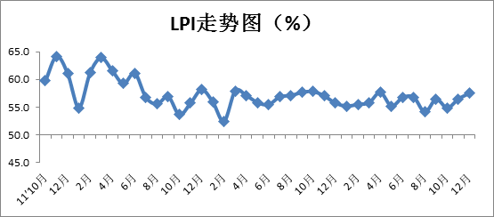 中國物流與采購聯合會發布的2014年12月份中國物流業景氣指數為57.5%,比上月回升1個百分點。
