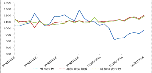 從分車型指數看,各車型指數環比均有所回升。整車指數為972.9點,比上周回升5.8%,比年初下降5.1%,但比5月末回升18.1%;零擔輕貨為1187.9點,比上周回升4.3%,比年初回升7.4%,比5月末回升6.7%;零擔重貨為1205.7點,比上周回升4.6%,比年初回升8.6%,比5月末回升7.7%。