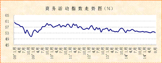 中國(guó)物流與采購(gòu)聯(lián)合會(huì)、國(guó)家統(tǒng)計(jì)局服務(wù)業(yè)調(diào)查中心發(fā)布的2015年8月份中國(guó)非制造業(yè)商務(wù)活動(dòng)指數(shù)為53.4%,環(huán)比回落0.5個(gè)百分點(diǎn)。建筑業(yè)淡季回調(diào)是非制造業(yè)整體商務(wù)活動(dòng)增速回落的主要原因。持續(xù)穩(wěn)定在53%以上的水平,也反映出當(dāng)前非制造業(yè)持續(xù)快速的增長(zhǎng)態(tài)勢(shì)未變。各細(xì)分指數(shù)顯示,保持市場(chǎng)持續(xù)穩(wěn)定運(yùn)行的積極因素仍然存在,市場(chǎng)基本面總體向好。
