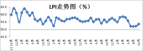 中國物流與采購聯(lián)合會發(fā)布的2015年10月份中國物流業(yè)景氣指數(shù)(LPI)為53.5%,比上月升1.3個(gè)百分點(diǎn)。各分項(xiàng)指數(shù)中,除主營業(yè)務(wù)利潤指數(shù)和主營業(yè)務(wù)成本指數(shù)等較上月回落,其他分項(xiàng)指數(shù)較上月有不同程度回升。