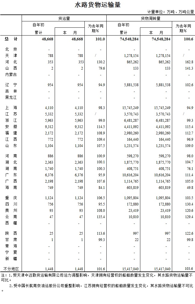 2016年1月水路貨物運輸量