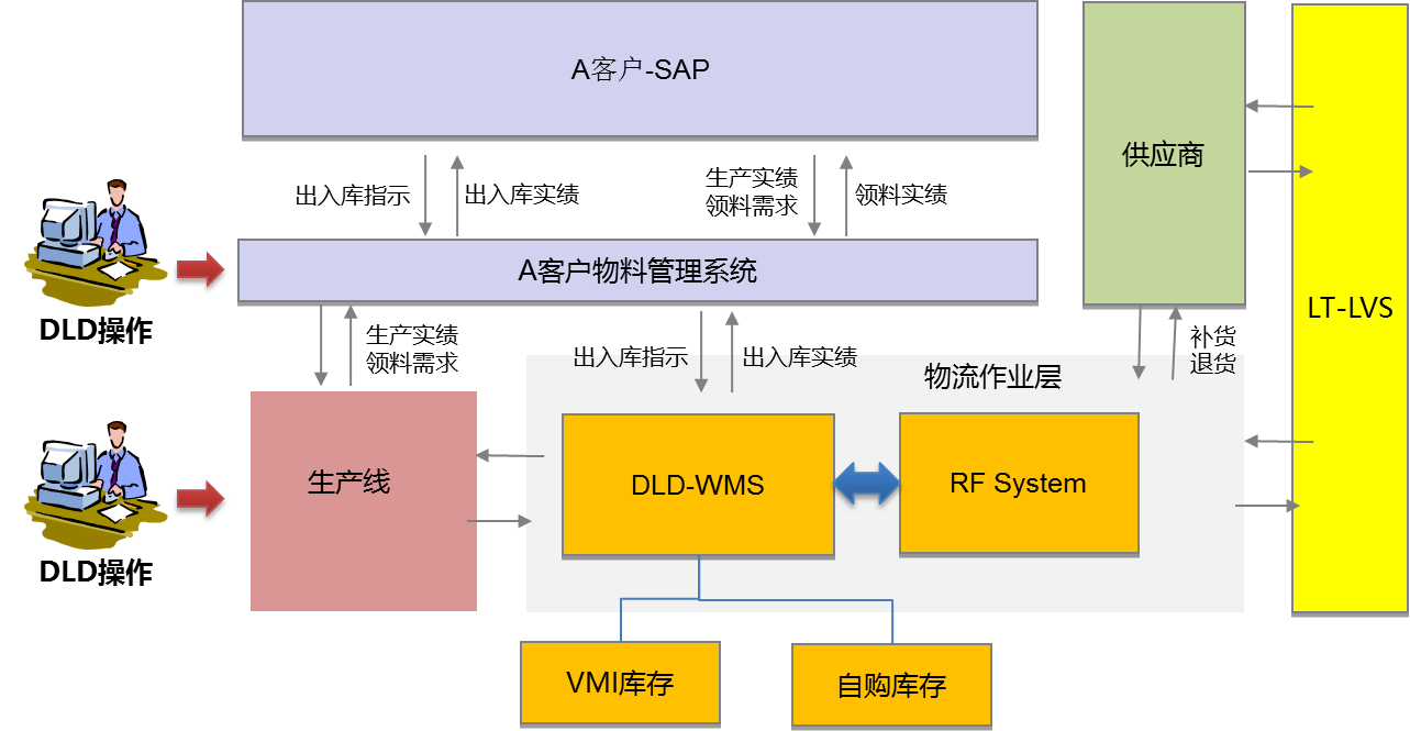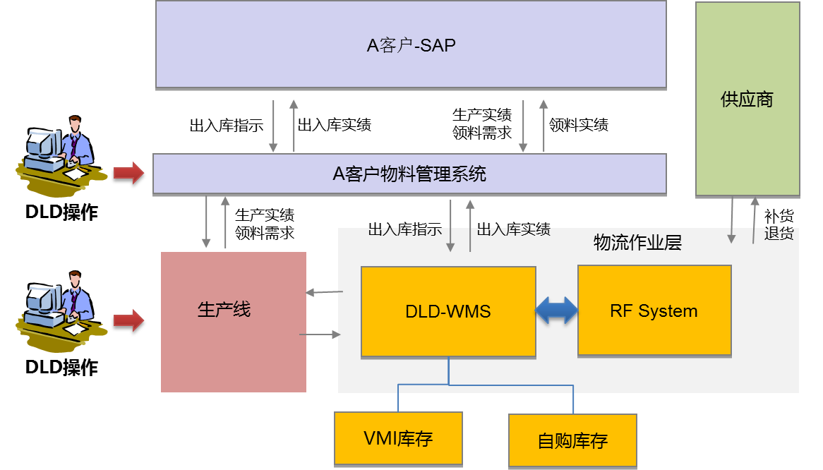 在這一階段德利得WMS與A客戶的物流管理系統進行了DEI對接,間接實現了與SPA系統的對接,實現了倉儲與出入庫操作的高效率與高準確率,滿足了物流倉庫向生產線供貨的客戶需求。