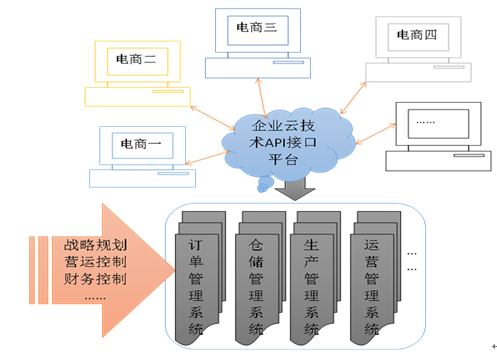 企業(yè)云平臺+多電商模式,組合多種管控模式,實現(xiàn)流程的協(xié)同;