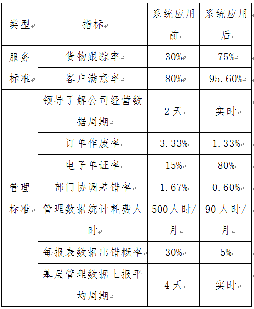 1、信息化實施前后的效益指標對比
