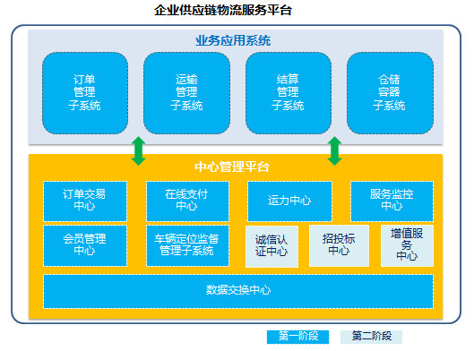 完成平臺基礎搭建,包括數據交換中心、訂單交易中心、在線支付中心、運力中心、服務監控中心、會員管理中心、車輛定位監控管理子系統;完成業務應用系統建設,包括訂單管理子系統、運輸管理子系統、結算管理子系統、APP應用。