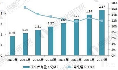 2010-2017年中國汽車保有量規模(單位:億輛)