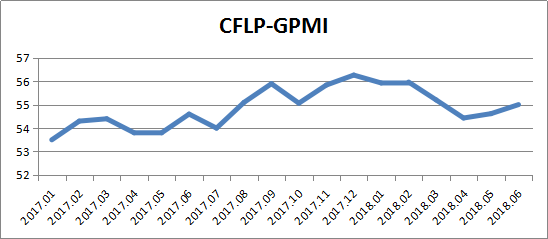 據(jù)中國物流與采購聯(lián)合會發(fā)布,2018年6月份全球制造業(yè)PMI較上月上升0.4個百分點至55.0%;上半年均值為55.2%,較去年同期上升1.1個百分點,各月穩(wěn)定在54%以上;二季度均值較一季度回落1個百分點至54.7%。