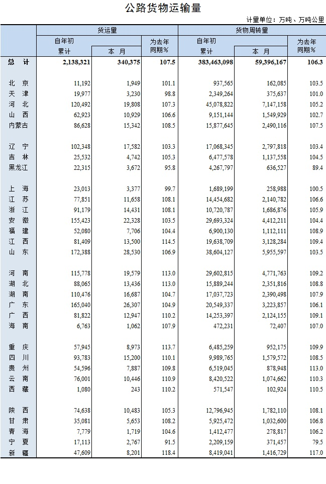 2018年7月公路貨物運輸量