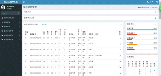 截止目前平臺上合作貨主有1,089名,合作司機有28,051名,每個貨主和司機都可以根據(jù)其常發(fā)(拉)路線、發(fā)(拉)貨記錄、在發(fā)(拉)貨源進行精準畫像。具體如下所示: