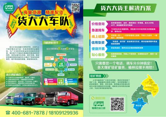 3.積極與各省市大宗商品交易平臺、廠礦、貿(mào)易商合作,將運輸品牌化、規(guī)?;?,逐步形成以榆林為核心、輻射晉陜蒙寧甘的大宗商品運輸中心、結算中心、數(shù)據(jù)中心,擴大榆林煤的品牌影響力,將榆林煤送往全國各地。