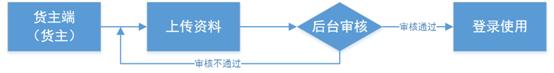 貨主在線填寫基本資料(姓名、電話、公司名稱、公司地址)、在線上傳證件照(營業(yè)執(zhí)照、企業(yè)法人身份證),客服人員同步審核,資料通過審核后方可登錄使用平臺;