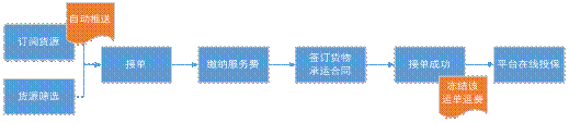 貨達物流的依托互聯(lián)網(wǎng)大數(shù)據(jù)平臺,為貨主提供一站式承運服務,逐步實現(xiàn)運輸全流程在線化、數(shù)據(jù)化管理,實現(xiàn)貨源、合同、運單、定位、支付、稅票等服務模塊的統(tǒng)一與貫通。下圖為整個承運總流程示意圖: