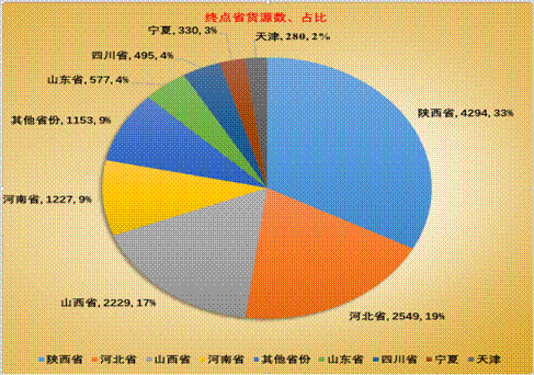 一期通過半年上線運行,平臺累計發(fā)布貨源13,636條,累計發(fā)運車次104,006車,上游發(fā)貨站點涉及以榆林一區(qū)三縣為主共計400個煤礦/煤廠,下游卸貨站點包含29個省份、202個市、725個縣的1000余個站點。其中陜西、河北和山西是最大的前三個貨源目的地,合計占到貨源總數(shù)的近70%。以下為貨源上下游站點列表截圖如下: