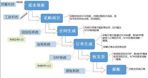 沒有全局角度對供應鏈系統各層次、各角度、各因素進行統籌規劃,對供應鏈全過程業務缺少統一的管理規范,與省內ERP系統、工建系統、預算系統、報銷系統、合同系統、統一信息平臺和集團供應鏈系統、電子招投標系統、主數據平臺等系統之間沒有完全打通,IT業務流程固化和信息化手段建設比較薄弱。