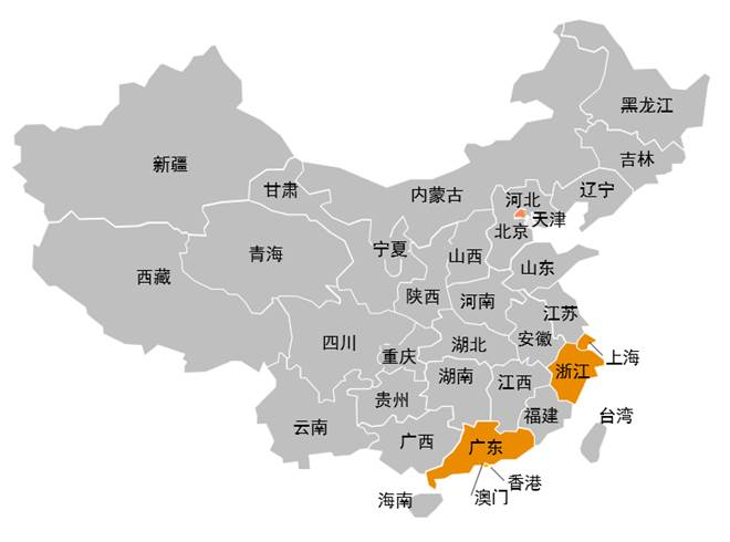浙江、香港、北京、上海及廣東是國內交易活躍的地區。上述五地交通網絡發達、電商產業和消費動力活躍、高端制造業領先,社會物資流動需求廣泛。