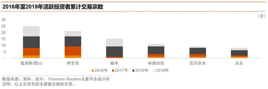 2016年至2019年物流行業活躍投資者為普洛斯/隱山資本、阿里系、順豐控股、鐘鼎創投、遠洋資本和京東等,以產業投資者為主。2019年,上述企業共參與了23宗交易,交易數量較2018年減少,但交易規模則逆勢增長,一定程度反映出重要投資者對物流行業長遠發展潛力仍具信心。