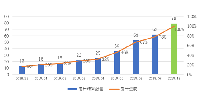 截止2019年末,精簡全省79個縣庫,精簡比例100%。