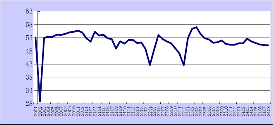 - 2024年8月份綜合PMI產(chǎn)出指數(shù)為50.1%