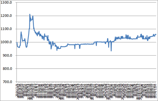 圖1 2016年以來(lái)各周中國(guó)公路物流運(yùn)價(jià)指數(shù)