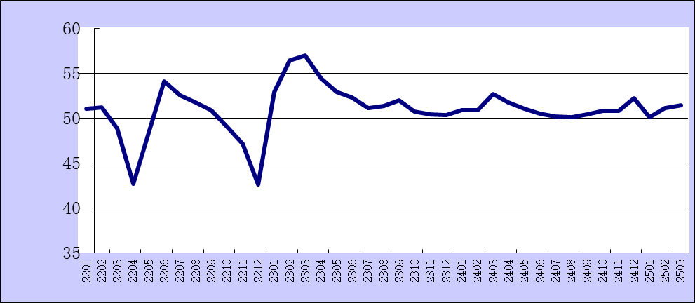 中國物流與采購聯合會、國家統計局服務業調查中心采購經理調查發布的2025年3月份綜合PMI產出指數為51.4%,比上月上升0.3個百分點。該指數是PMI指標體系中反映當期全行業(制造業和非制造業)產出變化情況的綜合指數,由制造業生產指數與非制造業商務活動指數加權求和而成,權數分別為制造業和非制造業占GDP的比重。