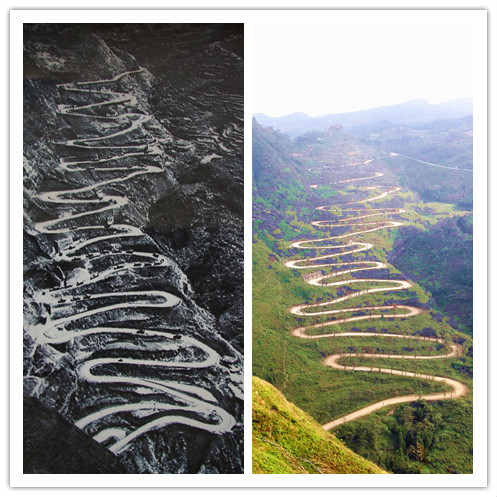 晴隆“24道拐”抗戰公路,堪稱險峻公路建設史上的杰出典范。它是中美兩國人民英勇抗擊日本侵略者歷史的真實寫照,是中國抗日戰爭大后方唯一的陸路運輸線及國際援華物資的大動脈,被譽為“中國抗戰的生命線”,又稱“歷史的彎道”。從山腳至山頂的直線距離約350米,垂直高度約260米;在傾角約60度的斜坡上以“S”型順山勢而建,蜿蜒盤旋至關口,全程約4公里。