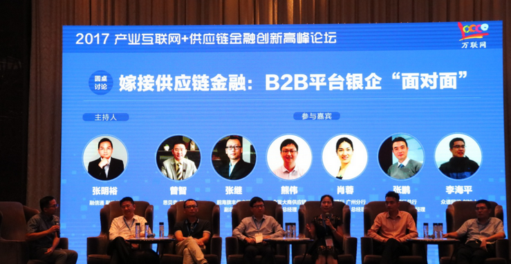 在下午的圓桌對(duì)話環(huán)節(jié)中,萬聯(lián)網(wǎng)邀請(qǐng)了融信通副總裁張明裕、思貝克總經(jīng)理曾智、前海旗豐供應(yīng)鏈副總經(jīng)理張繼、金發(fā)大商供應(yīng)鏈總經(jīng)理熊偉、華夏銀行小微信貸部總經(jīng)理肖蓉、招商銀行總行副總經(jīng)理張鵬、眾譜網(wǎng)創(chuàng)始人李海平等行業(yè)精英現(xiàn)身說法,產(chǎn)業(yè)互聯(lián)網(wǎng)平臺(tái)如何高效率獲得金融機(jī)構(gòu)的低成本資金?目前產(chǎn)業(yè)互聯(lián)網(wǎng)平臺(tái)很難獲得銀行資金支持的根源在哪里,如何突破?