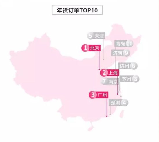 在每日優(yōu)鮮年貨訂單中,北京、上海、廣州位列前三。