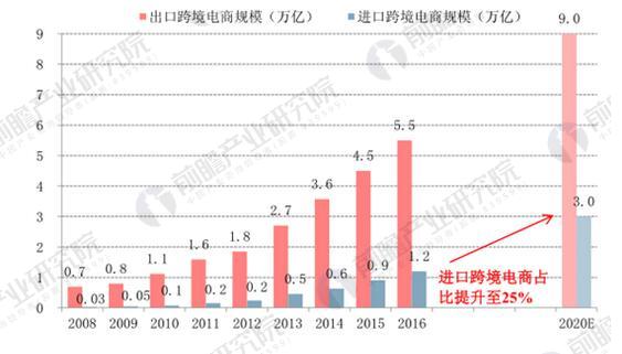 由于我國的出口產能有著較強的成本優勢和釋放需求,加之一帶一路政策對跨境出口有相對傾斜,目前我國跨境電商仍以出口為主。根據統計,2016 年我國出口跨境電商交易額占整體交易額的82.1%。但伴隨著國內消費升級的帶動,以母嬰用品、美妝、食品和輕奢類產品為主的進口跨境電商市場迎來快速發展,進口跨境電商占比不斷提升,從 2008 年的 4.2%上升至 2016 年的17.9%預計 2020 年將達到 25%。