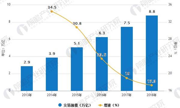 2013-2018年跨境電商交易規模預測