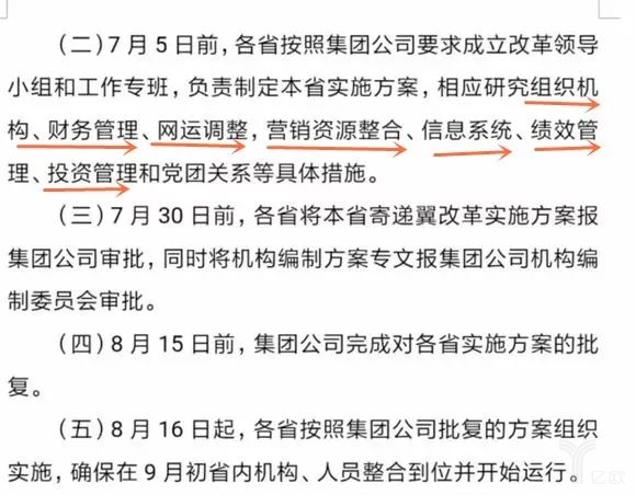 如圖所示,中國郵政在要求各省制定施方案時,明確提到了組織機構(統一網絡,部分網點合并)、財務管理(統一核算,報表合并)以及網運調整和營銷資源整合等。