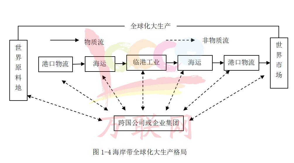 近半個世紀以來,海岸帶臨港工業迅速崛起并持續高速發展,依托海港建設、大型船舶運輸發展起來的臨港工業和海運物流,在跨國公司的運作下形成了現代意義上的全球化大生產。海岸帶是世界人口密集、經濟發達的地帶,在全球經濟一體化和全球化大生產中具有重要的地位。海岸帶臨港工業和海運物流的發展,是全球化大生產過程的重要環節,跨國公司或企業集團是全球化大生產的組織者,依靠先進的通訊技術和與全球范圍內的原料地、國內外產品市場緊密聯系,形成海岸帶全球化大生產格局。
