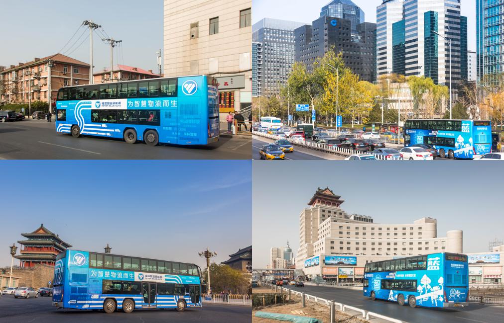 【智藍新能源雙層廣告巴士打卡北京地標】