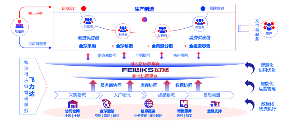 以飛力達為例,飛力達通過整合資源、創新服務,圍繞制造產業的核心客戶,積極搭建了“供應鏈協同”、“ 物流協同”兩大平臺,打通從上游Inbound到下游Outbound的整條供應鏈服務,打造出集“采購物流、入場物流、成品物流、售后物流”為一體的供應鏈物流體系。通過連接品牌商、制造商、供應商三方,導入先進的智能物流技術,推動供應鏈物流服務向智能化、協同化、平臺化方向發展,為客戶提供端到端的供應鏈解決方案。據姚勤透露,目前飛力達正在同一客戶構建協同機制,飛力達自動化立體庫與對方產線可以做到智能一體化協同,預計今年底可看到成果。