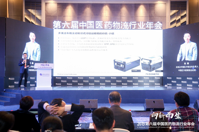 大會期間,多美達不僅展出了創新技術研發的CCX系列主動制冷式冷鏈運輸箱產品,多美達中國區冷鏈業務負責人趙磊經理還在會議現場做了關于《新型智能技術,助力冷鏈物流事業發展》的精彩演講,與現場200余位行業大咖一同圍繞“第三方醫藥物流的創新之路”、“醫藥供應鏈轉型趨勢與數字化供應鏈”等多個話題進行多維度分享與互動。就“新型智能技術,助力冷鏈物流事業發展”這一板塊,趙經理表示,疫苗管理法的出臺代表著醫藥冷鏈物流的監管要求更加嚴格,冷藏箱的選擇與使用,需要根據業務量、模式選擇等相結合的方式確保冷鏈產品的質量與安全。