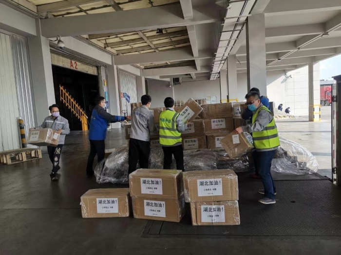 1月28日,中國外運協(xié)同寶潔公司,為湖北疫區(qū)馳援3142件洗手液與洗衣液等個人清潔用品。在接到訂單后,僅用7小時完成了清潔用品從備貨到裝車,當(dāng)晚22:00三輛車整裝后迅速發(fā)車前往黃岡、黃石、十堰三地。此次清潔用品主要用于當(dāng)?shù)蒯t(yī)院、消防隊、社區(qū)的防治工作。