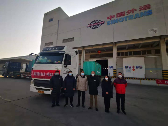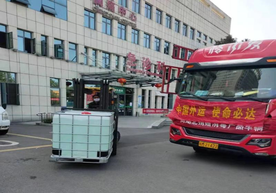 1月31日,中國外運接受北京市相關單位委托,運送企業捐贈的救援物資。當日下午17時裝載物資的車輛連夜從北京出發,2月1日上午11時許抵達湖北省十堰市鄖陽區衛生健康所,完成近757公斤200桶84消毒液等緊缺的疫情救援物資的運輸任務。